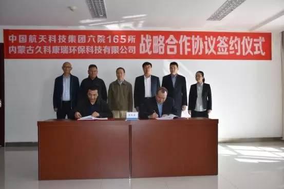 2017年4月20日上午9:00,双方在久科环保公司举行了战略合作签约仪式,中国航天科技集团六院165所副所长黄兴与内蒙古久科康瑞环保有限公司副总经理王俊辉,代表双方签署了《深度战略合作协议》,李亚裕书记一行及久科环保董事长李战胜及各部门负责人等出席了本次签约仪式。