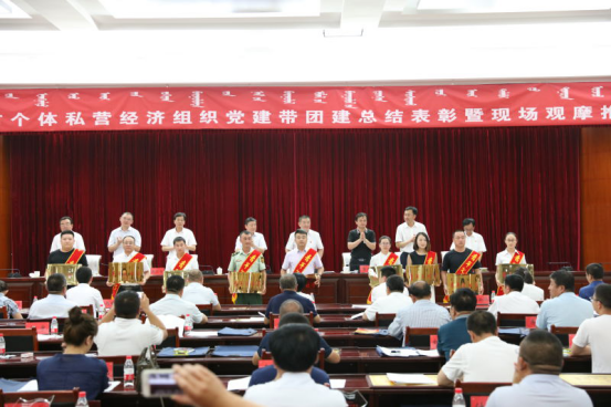 2017年7月25日,鄂尔多斯市工商行政管理局、共青团鄂尔多斯市委员会、鄂尔多斯市个体劳动者协会、鄂尔多斯市私营企业协会组织召开了鄂尔多斯市个体私营经济组织党建带团建总结表彰暨现场观摩推进大会。