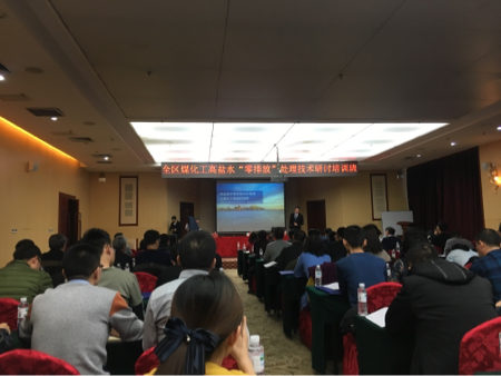 2017年12月5日至12月6日,由内蒙古自治区环保厅主办,内蒙古自治区环境工程评估中心承办的全区煤化工高盐水“零排放”处理技术研讨培训班在鄂尔多斯举行,鄂尔多斯市环保局局长董介忠与自治区环境工程评估中心袁迎辉作了开幕致辞。
