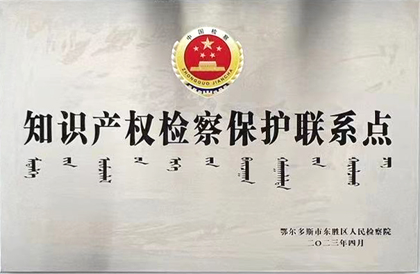 4月26日世界知识产权日当天,东胜区人民检察院、鄂尔多斯市公安局东胜分局、东胜区市场监督管理局有关部门领导为内蒙古久科康瑞环??萍加邢薰镜攘业ノ唤兄恫觳毂;ち档慵惺谂?,体现了东胜区人民检察院对民营企业知识产权工作的支持和?;?,久科环保技术总监张娜代表公司接受了牌匾。