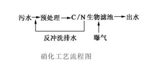 硝化和反硝化工艺流程1除碳及硝化对于去除氨氮,可采用两段曝气生物滤池,两段法可在2座滤池中驯化不同功能的优势菌种,各负其责,提高生化处理效率。